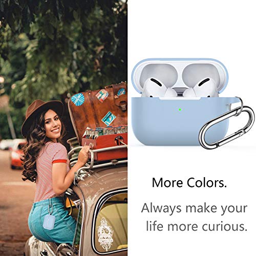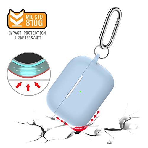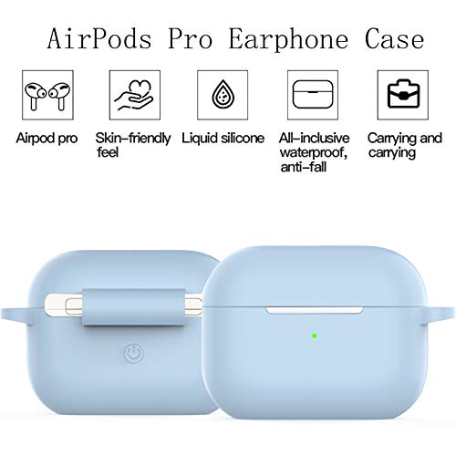 Custodia per AirPods Pro,Watruer Soft Silicone Skin Cover Custodia protettiva antiurto con portachiavi per Apple Airpods Pro 2019 (LED anteriore visibile) - Azzurro