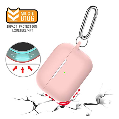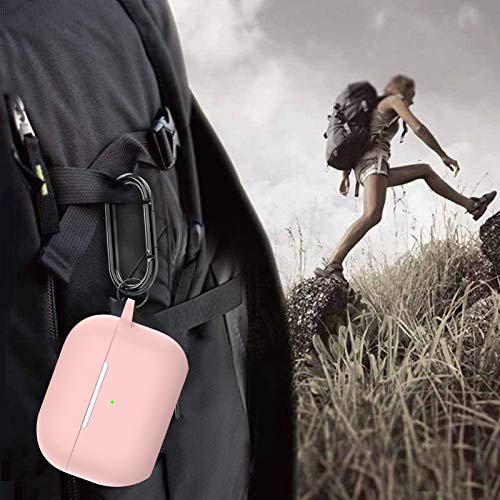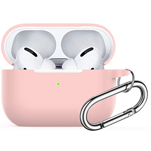 Custodia per AirPods Pro,Watruer Soft Silicone Skin Cover Custodia protettiva antiurto con portachiavi per Apple Airpods Pro 2019 (LED anteriore visibile) - Rosa