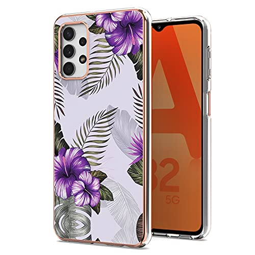 Custodia Antiurto per Samsung Galaxy A23 4G 5G Cover Marmo Colorato Protettiva Ibrida Antigraffio Paraurti Resistente in TPU Flessibile PC Rigido Custodia per Samsung Galaxy A23 4G 5G-Fiori Viola