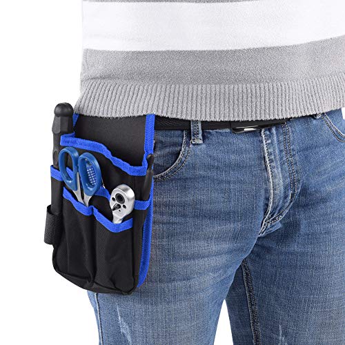 Custodia per attrezzi - Borsa per attrezzi multifunzione portatile in tessuto Oxford Marsupio da campeggio per arrampicata in montagna all'aperto con cintura(Bordo blu con cintura)