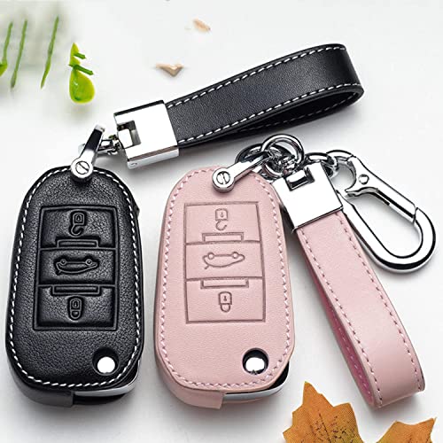 Custodia for Auto in Pelle Custodia in Pelle, Adatta for PE-uge-OT 107 207 301 307 308 407 607 807 308S 408 2008 3008 4008 5008, Adatto for Citr-Oen C4 Copri Chiave Auto (Colore: E)