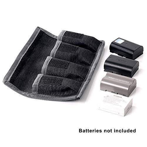 Supporto compatto per un massimo di quattro batterie DSLR standard o molte batterie AA/AAA. Risparmierai le preoccupazioni di trovare batterie e ottenere rapidamente backup durante le riprese con le batterie in questa borsa.