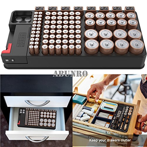 Una scatola che contiene 102 batterie: porta l'organizzazione della batteria al livello successivo organizer per batterie AA che memorizza ancora di più. 48 pezzi AA, 24 batterie AAA, 8 celle D e 10 celle C, 8 batterie da 9 V e 4 batterie pulsanti.