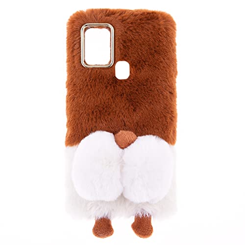 Custodia per Blackview A70 Fluffy Fur Plush Custodia Faux Pelliccia Pelosa e Morbida 3D Corgi Peluche Pom Pom Case TPU Protective Bumper Case Fluffy Custodia Silicone per Blackview A70,Corgi Marrone