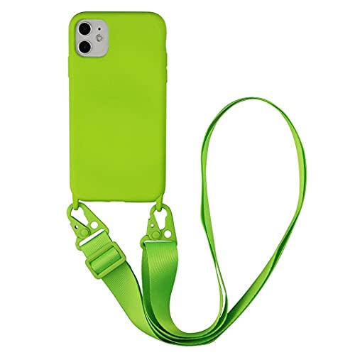 Custodia per cellulare compatibile con iPhone 7 Plus Necklace Custodia Nylon Tracolla Morbida Silicone TPU Cover con Cordino da Appendere Cover con Elegante Band per iPhone 8 Plus, Verde luminoso