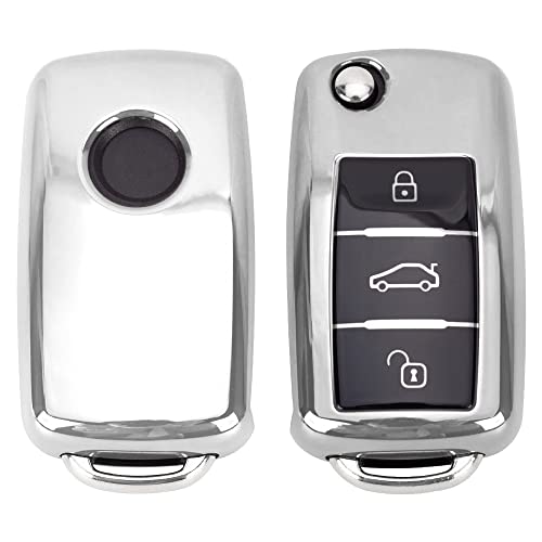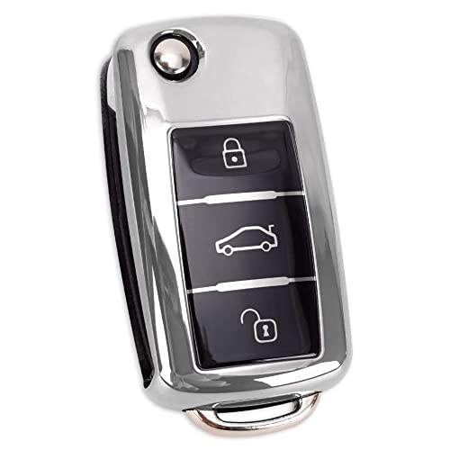 Custodia per Chiave Auto per VW Golf Skoda Cover per chiave per sedile Cover per chiave auto in TPU a 3 pulsanti (Argento)