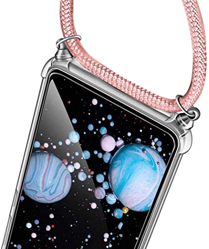 Custodia Collana per Cellulare Compatibile con Samsung Galaxy J7 2016 - Cover Silicone TPU Protettiva Trasparente - Custodia indossabile per Collo - Case a Tracolla con Cordina, Rosa