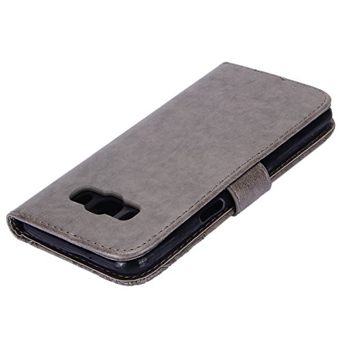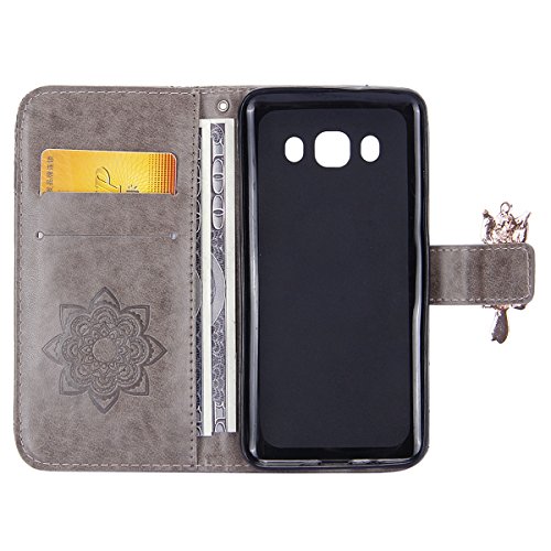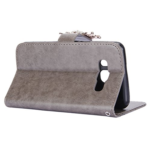 Custodia Compatibile con Samsung Galaxy J5 2016 Case Portafoglio,Cover Galaxy J5 2016 Diamante,Bling Brillantini 3D Strass Gufo Fiore Disegn Grigio Wallet PU Flip Case Stand Card Slot Magnetica