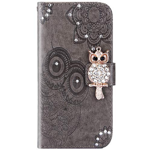 Bling Shiny 3D Strass Gufo Fiore Goffratura Disegn Wallet Flip Case Aspetto ultrasottile per mantenere lo stile elegante,un design personale unico e creativo