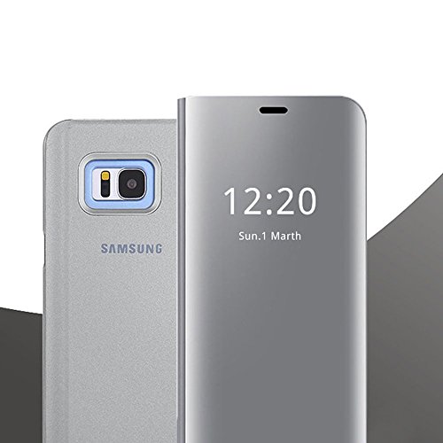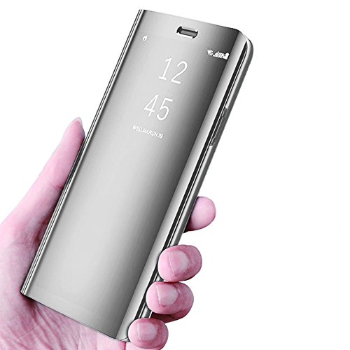 Custodia Compatibile with Galaxy S6 Edge cover, Galaxy S7 Edge Custodia a portafoglio per Galaxy S6 Edge plus Custodia Flip Case Clear View Cover PC Duro Case (Galaxy S6 Edge Plus, argento)