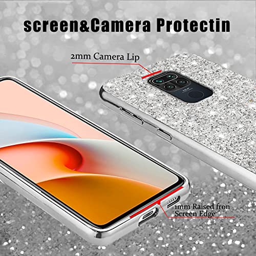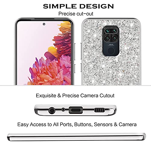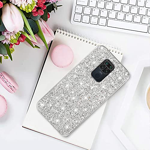 Custodia compatibile con Xiaomi Redmi Note 9, custodia con glitter, custodia per cellulare Xiaomi Redmi Note 9 Case sottile nero (argento, Xiaomi Redmi Note 9)