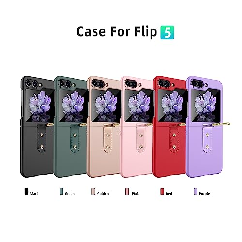 Custodia Cordino Compatibile con Samsung Galaxy Z Flip 5,Unibody con Esterno Schermo Vetro temperato PC con Aperto Metallo Anello Cover - Verde