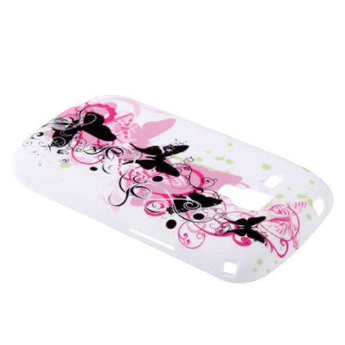 Custodia COVER case gel TPU per Samsung Galaxy Trend s7560 Plus s7580 + 2 pellicole - BIANCO con FARFALLE ROSA
