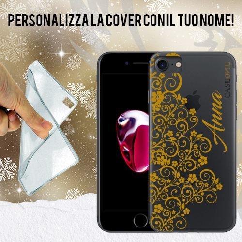 Custodia cover case trasparente pizzo ricamo oro con nome personalizzato iphone 7 plus