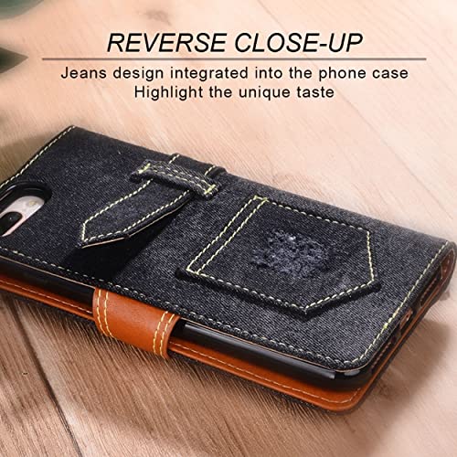 Custodia Cover compatibile con Motorola One Action,custodia a portafoglio in pelle con slot per schede,supporto per supporto e chiusura magnetica,Tessuto jeans Cover per Motorola One Action