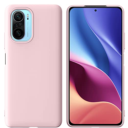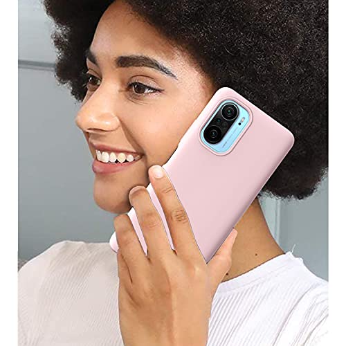 Custodia Cover Compatibile con Xiaomi Poco F3 con 2 Pezzi di Vetro Temperato Incluso, Morbido Silicone Liquido Protettivo Bumper TPU Gel Smartphone Custodia Case, Rosa
