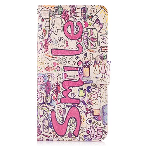 Custodia Cover per Huawei P10 lite,Ukayfe Luxury Protettiva Flip Portafoglio Cover Copertura Custodia con Super Sottile TPU Interno Case e Porta carte di credito in PU pelle Supporto Stand con Chiusura Magnetica per Huawei P10 lite,Huawei P10 lite Pittura Colorata Cristallo 3D Design Lussuosa Bumper Slim Folio Protectiva[Shock-Absorption]-Sorriso Rosa
