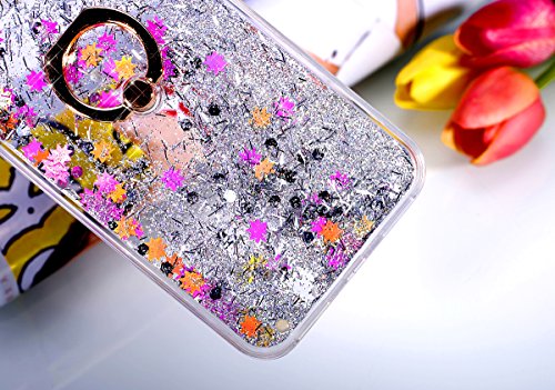 Custodia Cover iPhone 7/8,Ukayfe Cristallo di lusso di Bling di scintillio lucido diamante scintilla iPhone 7/8 Case Copertura Custodia Cover [Cristallo Trasparente] Protettiva Trasparente con Liquido di flusso lucido diamante scintillante copertura dura di plastica trasparente con TPU Morbido Bordo Custodia Backcover Crystal Clear Case Custodia Cover con Built-in Rotazione Grip Ring Kickstand per iPhone 7/8-Stella color 4