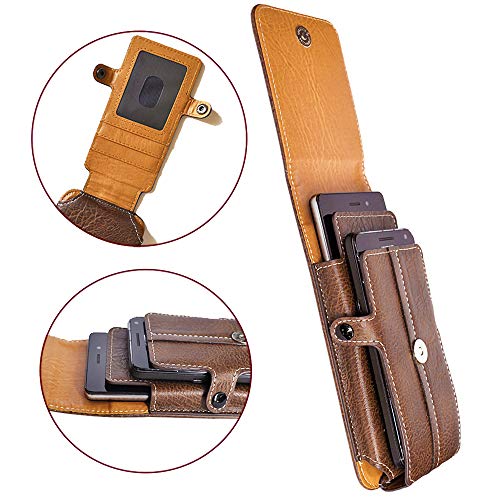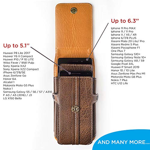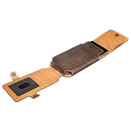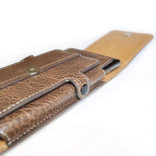 Custodia cover verticale per Iphone 8 plus. Dotata di moschettone, passante per cintura, chiusura magnetica e portadocumenti. In similpelle texturizzata marrone.