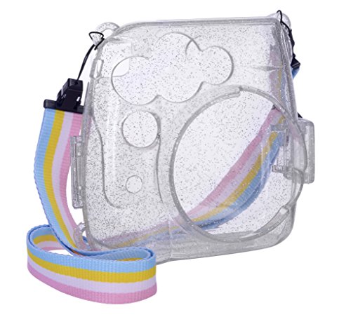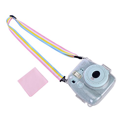 Custodia in cristallo Goocor con cinturino a spalla regolabile Rainbow e panno per lenti per Fujifilm Instax Mini 9 / Mini 8 / Mini 8+ Telecamera istantanea - Lucido e trasparente