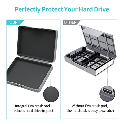 Protezioni multiple: la scatola di archiviazione del disco rigido PHIXERO adotta un processo di stampaggio integrato e le parti superiore e inferiore sono saldamente fissate, il che può prevenire efficacemente la polvere. Materiale EVA completo integrato, avvolge perfettamente il disco rigido da 3,5 pollici, protegge il disco rigido dai graffi e può anche essere efficacemente antiurto e antistatico