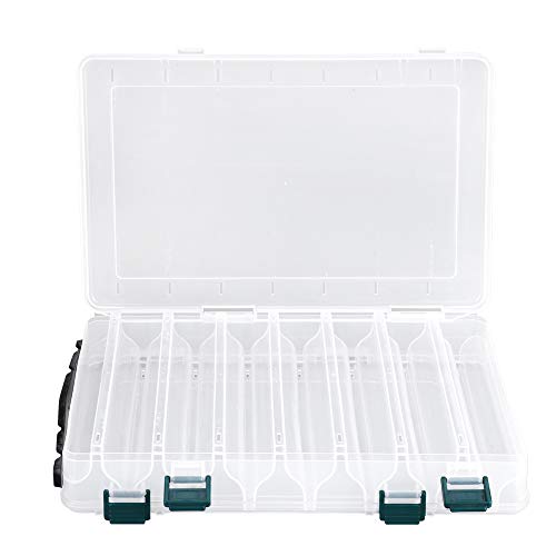 Custodia per esca in plastica, plastica trasparente a doppia faccia impermeabile trasparente richiamo per la pesca Ganci esca Attrezzatura da pesca Scatola di immagazzinaggio Contenitore(14 slot)