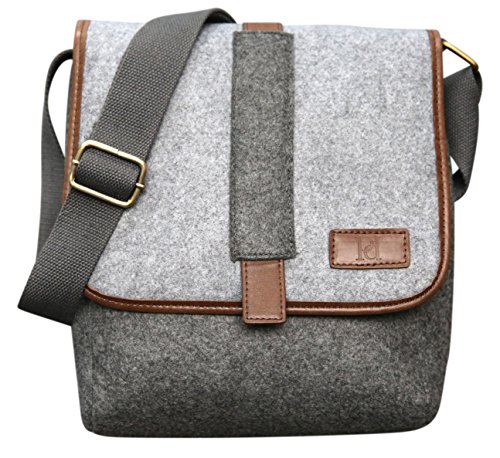 Custodia in feltro colore antracite-grigio, borsa a tracolla, per pane e tablet, da uomo