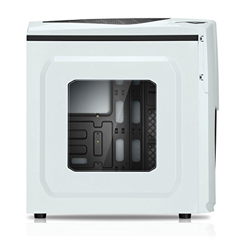 CiT - Custodia per PC fisso, Dragon 3, con ventola a LED blu, da 12 cm e aperture laterali. bianco White