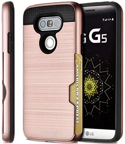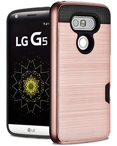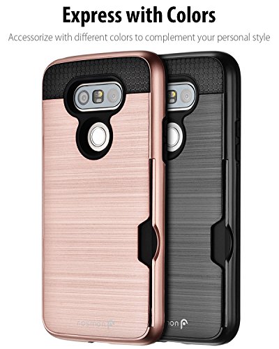 LG G5 Custodia, Fosmon (HYBO-SLOT) Slim Ibrido Hard Cover [Shock assorbente | Card Holder] portafoglio Case copertina per LG G5 - Rose Gold