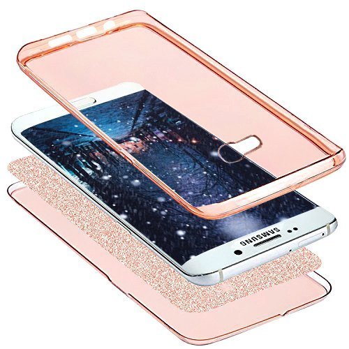 Custodia Galaxy A5 2016, Cover Galaxy A5 2016 360 Gradi Silicone, SainCat Cover per Samsung Galaxy A5 2016 Custodia Silicone Morbido, 360 Gradi Full Body Glitter Bling Ultra Slim Transparent Silicone Brillantini Case Ultra Sottile Morbida Gel TPU Cover Case Custodia Protettiva Crystal Clear Cover Bumper Antishock Antipolvere Ultra Soft Ultra Protettiva Custodia Bumper Cover per Samsung Galaxy A5 2016-Rosa