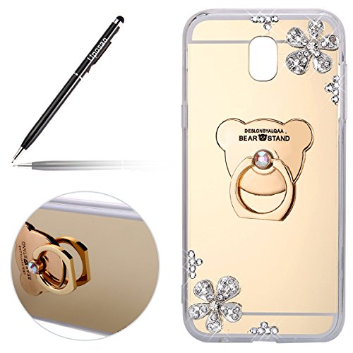 Custodia Galaxy J5 2017 Glitter,Galaxy J5 2017 Custodia in Silicone Morbido,Uposao Bling Glitter Strass Diamante Specchio Cover con Orso Anello Custodia per Samsung Galaxy J5 2017 [EU-Version]-(D'oro)