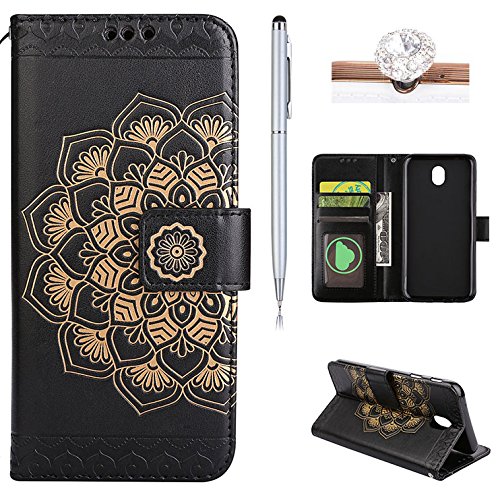 Custodia Galaxy J5 2017 (Versione Europea), Felfy Galaxy J5 2017 Custodia in Pelle Primo,Copertina Alla Moda Elegante Portafoglio Raccoglitore Novità con Cinghia Magnetica Carta di Chiusura della cinghia Polso, Modello Fiore in Rilievo Anti-Scratch Caso di copertura della Gomma Respingente Resistenza All'abrasione per Samsung Galaxy J5 2017 SM-J530 + 1 Argento Stylus Pen + 1 Spina di Polvere.Mandala,Nero