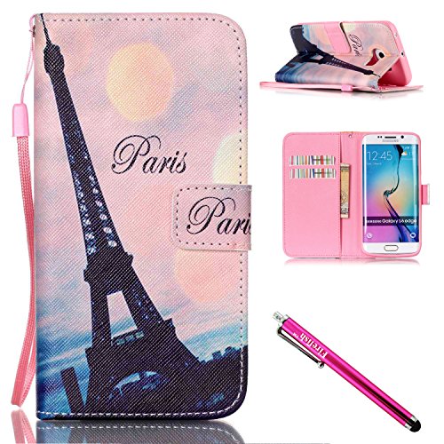 Custodia Galaxy S6 Edge, Firefish [slot per schede] [Kickstand] Flip Folio Portafoglio Custodia in pelle sintetica Shell antigraffio coperchio di protezione per Samsung Galaxy S6 Edge