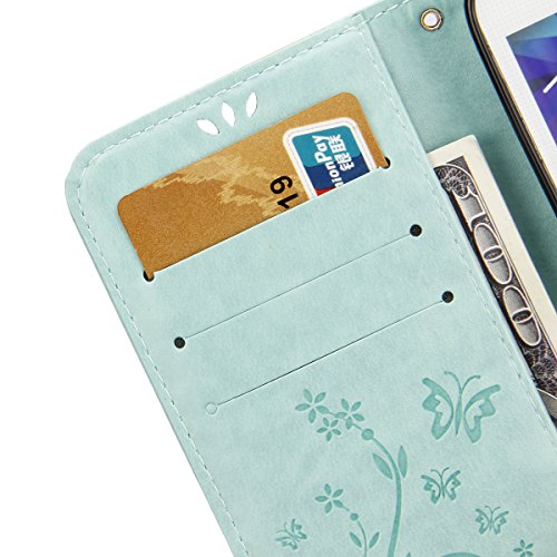 Custodia Galaxy S5 Mini,Cover Galaxy S5 Mini,ikasus Goffratura Arts Farfalla Fiore Immagine Flip Cover Portafoglio PU Pelle Protective Wallet Stand Custodia Cover per Galaxy S5 Mini,verde