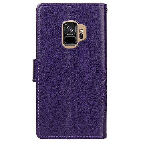 Custodia per Galaxy S9, S9, alla moda, realizzata a mano con strass 3D Bling Diamond in pelle PU con supporto per carte di credito, custodia a portafoglio per Samsung Galaxy S9 (viola, Galaxy S9)