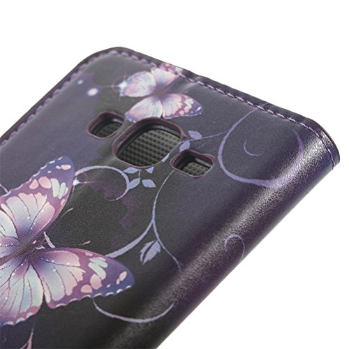 Custodia per Galaxy J5 SM-J500F,in Pelle Flip Case Wallet Cover Con carte di credito slot Protettiva Portafoglio Caso Guscio per Samsung Galaxy J5 SM-J500F Cover Case(Fine delle farfalle viola)