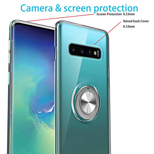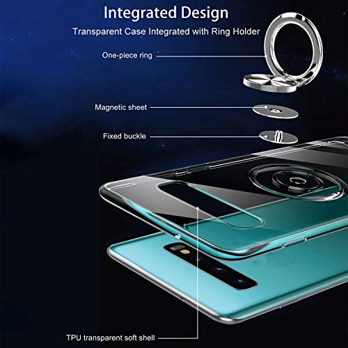 Custodia per Galaxy S10 Galaxy S10, ultra sottile e trasparente, in silicone TPU, con anello a 360 gradi e supporto magnetico per auto (Galaxy S10, trasparente)