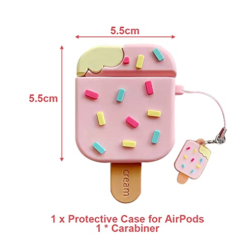 Custodia Gelato Compatibile con AirPods 3 Cover Case Hilloly Custodia Cover in Silicone con Moschettone, 3D Cute Ice Cream Custodia Protettiva Protezione Completa Antiurto Conchiglia(Rosa)