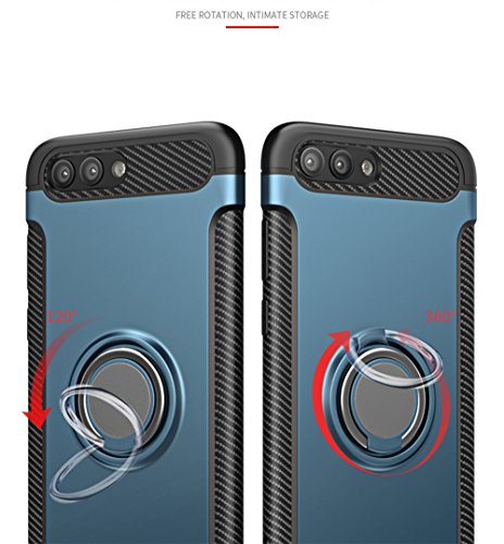 Custodia Honor View10, [con 360 ° Rotativa Anello] Antiurto [Doppia Protezione] Fibra di Carbonio [Assorbimento Della Staffa Magnetica per Auto] per Huawei V10 (View 10, Blu)