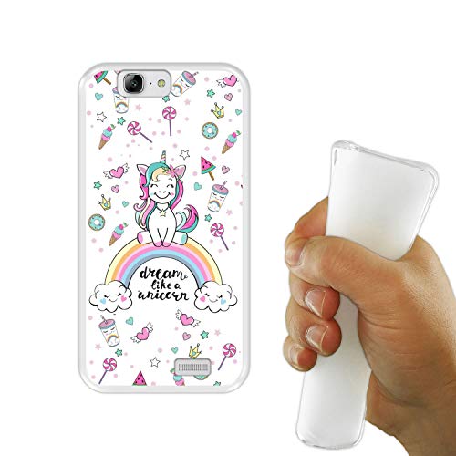 Custodia per [ Huawei Ascend G7 ] Disegni [ Arcobaleno, sogna Come Un Unicorno ] Cover Guscio in Silicone Flessibile Transparente TPU
