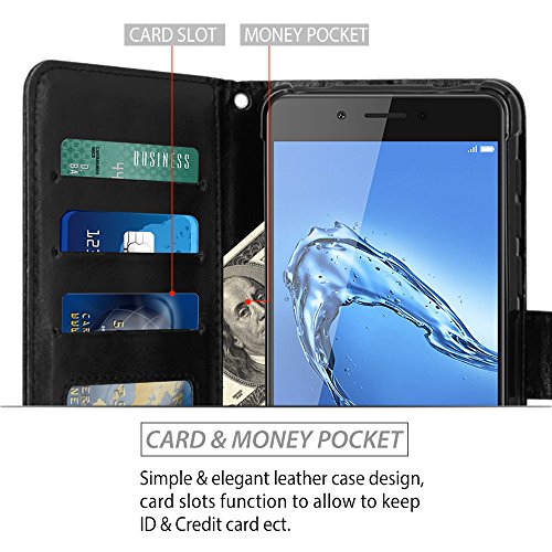 LK Custodia Huawei Honor 6C / Huawei Nova Smart, Case in Pelle PU di Lusso Portafoglio con Fessure di Carta Cover Protettiva - Nero