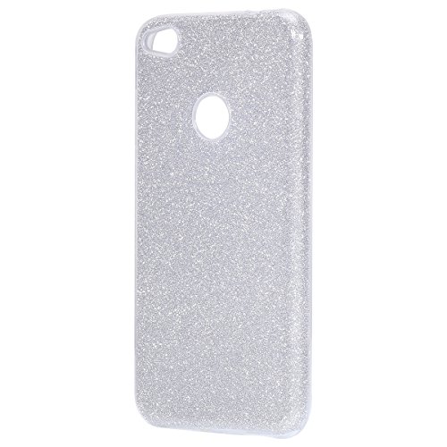 Custodia Huawei P8 Lite 2017, Cover Huawei P8 Lite 2017 Brillantini Silicone, SainCat Cover per Huawei P8 Lite 2017 Custodia Silicone Morbido, Brillantini Glitter Cover 3 in 1 Anti Shock Custodia Ultra Slim Plastica Rigida e Silicone Case Ultra Sottile Morbida Gel TPU Cover Case Custodia Protettiva Crystal Clear Cover Gomma Case Ultra Thin Slim Protettiva Anti-scratch Skin Cover Shell Coperture Bumper Cover per Huawei P8 Lite 2017-Argento
