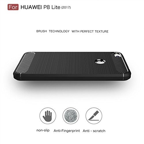 Custodia Huawei P8 Lite 2017 Nero, ivencase Lusso Cover TPU Silicone Case Custodia Shock-Absorption Bumper e Anti-Scratch Back per Huawei P8 Lite 2017 5.2"