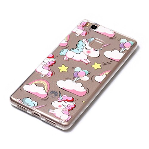 Custodia per Huawei P9 Lite, IJIA Trasparente Unicorno Le Nuvole TPU Silicone Morbido Protettivo Coperchio Custodia Bumper Protettiva Case Cover per Huawei P9 Lite