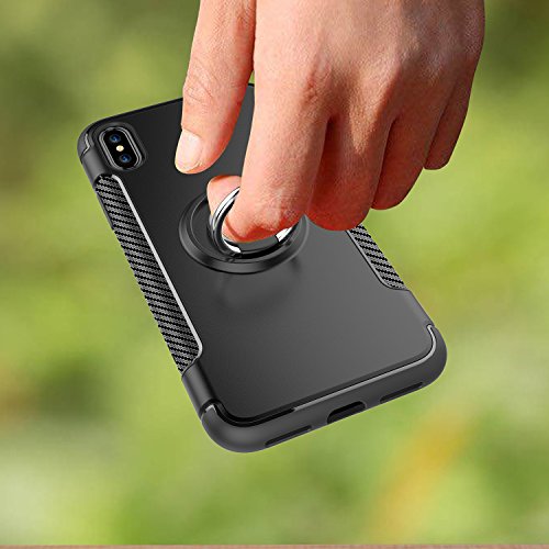 Custodia per Huawei P20 Lite, [con 360 ° Rotativa Anello] Antiurto [Doppia Protezione] Fibra di Carbonio [Supporto Magnetico Assorbibile] (P20 Lite, D'oro)