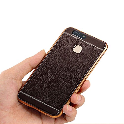 Custodia Huawei P9 Marrone Scuro, ivencase Elegante Ultra Sottile Struttura di Cuoio Flessibile TPU Ibrida Resistente ai graffi Protecttiva Case Cover per Huawei P9 5.2"
