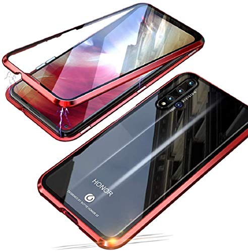 Custodia per Huawei Nova 5T/ Honor 20 Cover Adsorbimento Magnetica Case Bumper Metal Ultra Sottile 360 Gradi Full Body Protettiva Antiurto Fronte e Retro in Vetro Temperato Trasparente Cover,Porpora