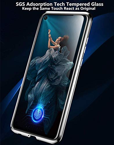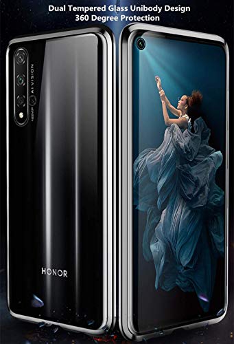 Custodia per Huawei Nova 5T/ Honor 20 Cover Adsorbimento Magnetica Case Bumper Metal Ultra Sottile 360 Gradi Full Body Protettiva Antiurto Fronte e Retro in Vetro Temperato Trasparente Cover,Argento