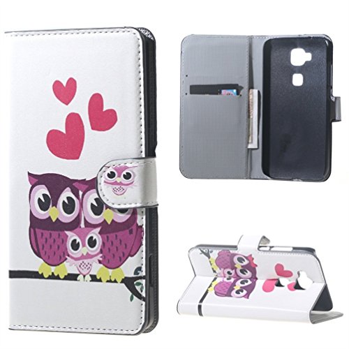 Custodia Huawei G8 Pelle,Protettiva Custodia a Portafoglio in Pelle per Huawei G8 Case Cover-Tre Gufo viola