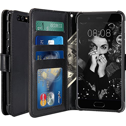 LK Custodia Huawei P10 Plus, Case in Pelle PU Portafoglio con Fessure di Carta Cover Protettiva - Nero